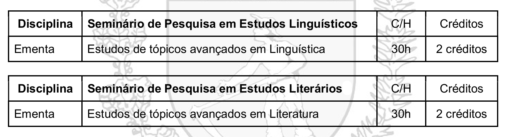 Observação: É necessário saber qual disciplina irá cursar conforme o estágio em que o aluno se encontra no mestrado ou doutorado.