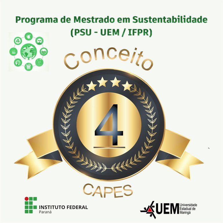 A Coordenação de Aperfeiçoamento de Pessoal de Nível Superior (CAPES) divulgou os resultados da avaliação quadrienal (2017-2020) dos programas de pós-graduação Stricto sensu em funcionamento no Sistema Nacional de Pós-Graduação (SNPG). Nesta avaliação, o Programa de Pós-graduação em Sustentabilidade (PSU) obteve Conceito 4. Esse conceito demonstra a relevância do PSU para a academia e para a sociedade, seguindo os critérios da CAPES. Para tal sucesso, ao longo dos anos, o percurso contou com o compromisso de docentes, técnicos e estudantes para estruturar o PSU, com ênfase na produção científica em revistas no Brasil e exterior, além da participação e organização de inúmeros eventos locais, nacionais e internacionais. O apoio das instituições de ensino associadas, UEM e IFPR, foi essencial para a construção da história do PSU, desde 2017, quando foi recomendado pela CAPES e implantado em Umuarama-PR. O recente Conceito 4, além de consolidar o Programa, permite a possibilidade da proposição do Doutorado em Sustentabilidade, próxima meta do PSU, garantindo a verticalização do ensino público, gratuito, de qualidade para o noroeste do Estado do Paraná.